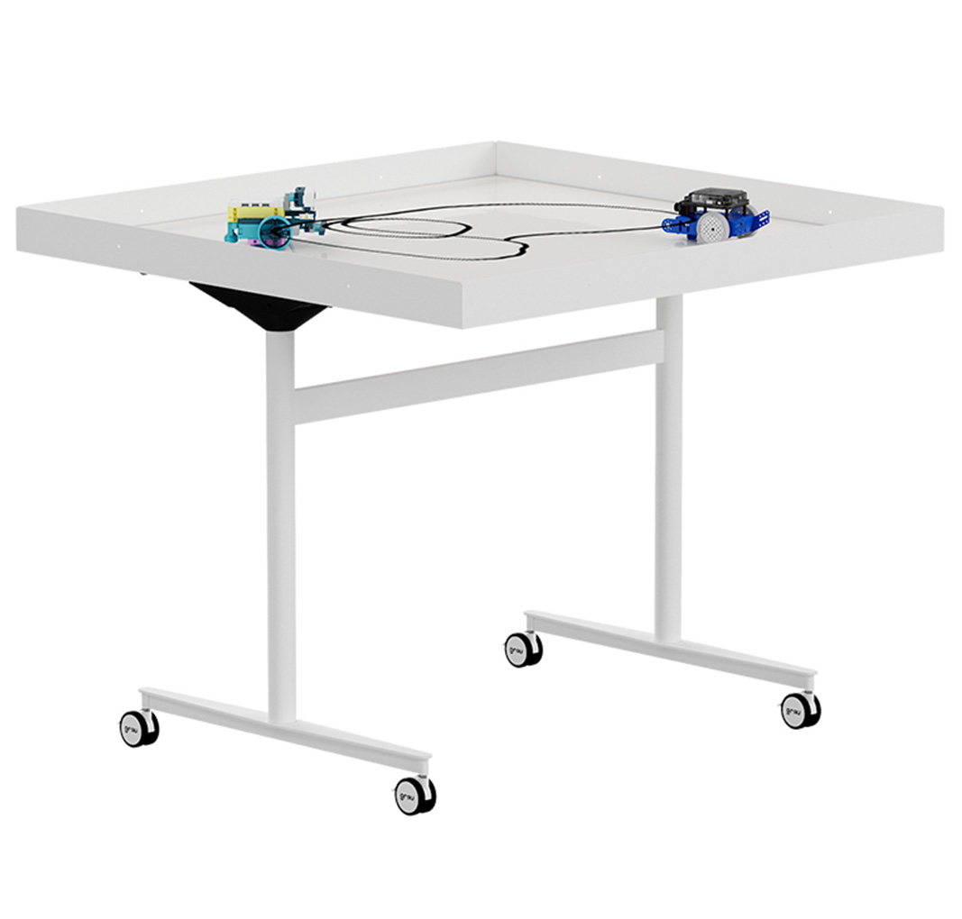 La Team BOT és una taula de competició polivalent per a robòtica educativa: estable per entrenaments, pràctica per a muntatge i transport al centre, i apta per a jornades de torneig. La superfície és rotulable, de manera que podem dibuixar circuits o senyalitzar zones de joc amb marcador esborrable.